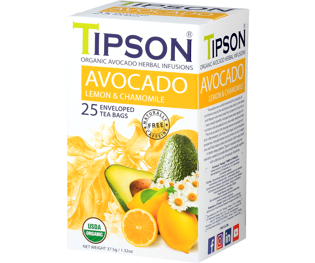 Tipson Avocado - Lemon and Chamomile - 25 Enveloped Tea Bags