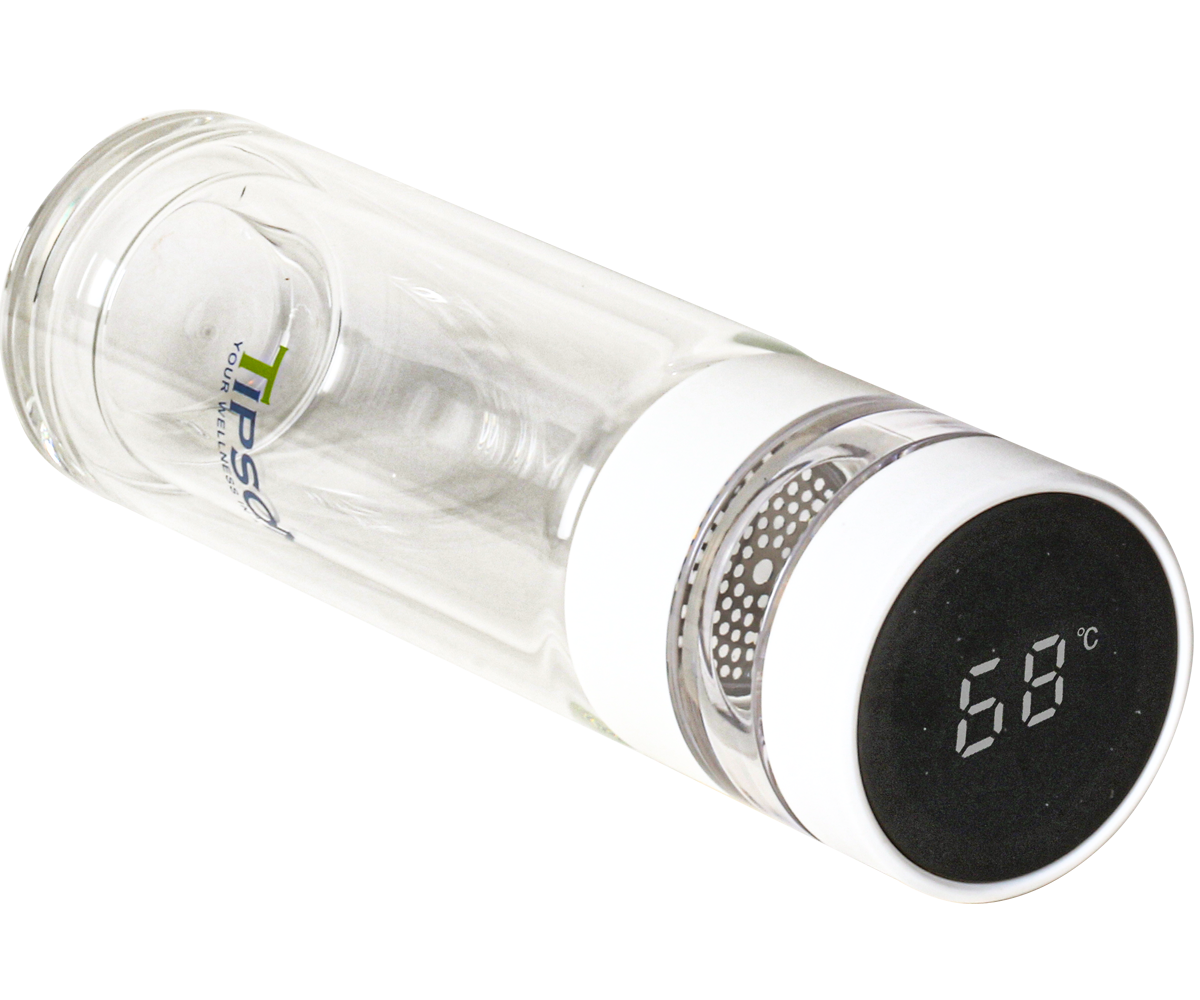 Tipson double-walled high quality Borosilicate glass tumbler with an in-built temperature sensor & two compartments| 300ml