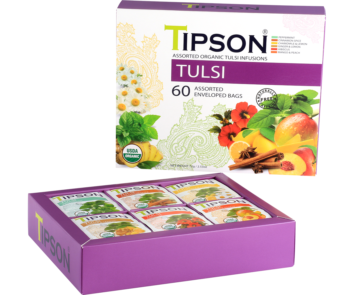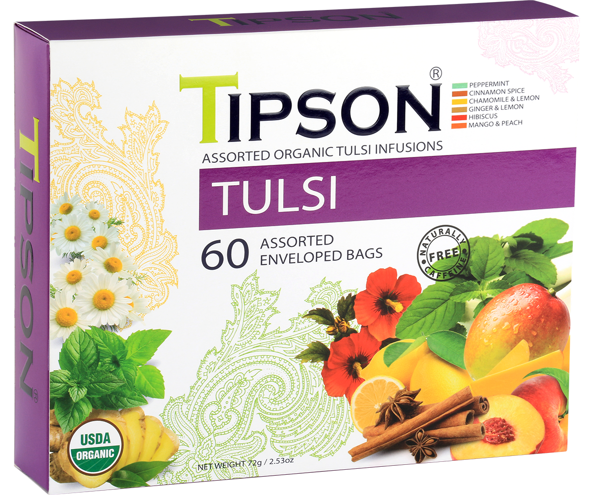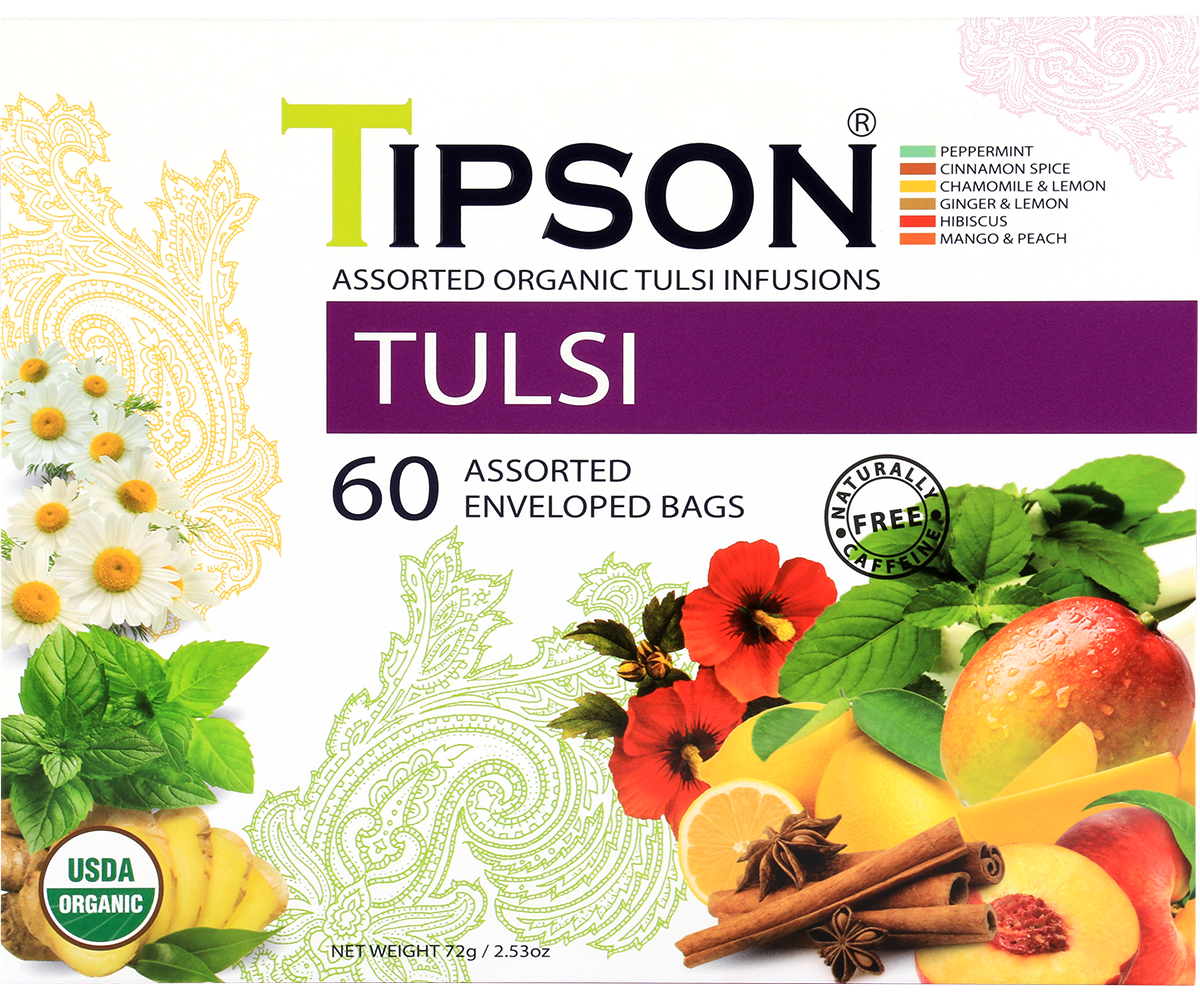 Tipson Organic Tulsi Assorted - 60 Enveloped Tea Bags